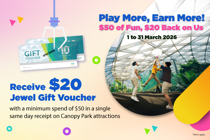 Play More, Earn More! Receive $20 Jewel Gift Voucher with a minimum spend of $50 in a single same-day receipt on Canopy Park attractions!