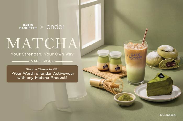 • Purchase any matcha item to enter our Lucky Draw and stand a chance to win 1 years’ worth of andar activewear (worth $1,400) — 3 winners to be selected!